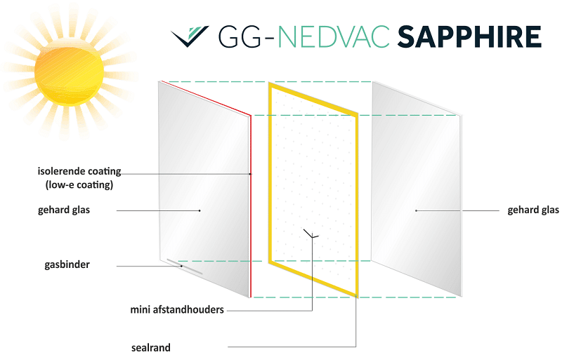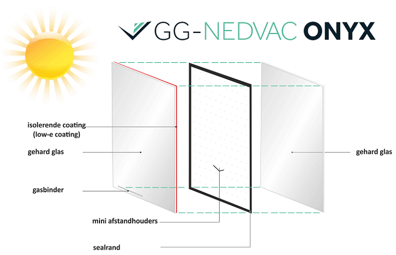 Der GG-NedVac Onyx ist eine ausgezeichnete Wahl für alle, die nach erschwinglichem Vakuumglas suchen, ohne Kompromisse bei der Qualität einzugehen. Mit einem U-Wert von 0,57 bietet der NedVac Onyx gute Dämmwerte, die für Energieeinsparungen und ein angenehmes Raumklima sorgen.
